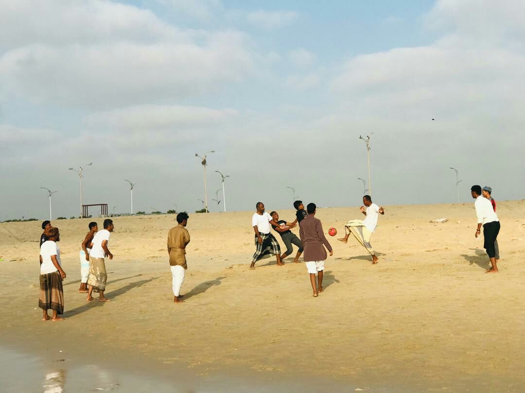 مباراة كرة قدم بين المعلمين والطلاب على شاطئ البحر صباح الجمعةتم نشر هذه الصورة على قناة الثانوية عاى التلقرام.